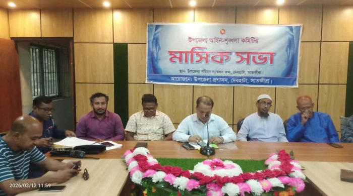 সাতক্ষীরার দেবহাটা উপজেলা প্রশাসনের আয়োজনে উপজেলা আইনশৃঙ্খলা কমিটির মাসিক সভা অনুষ্ঠিত হয়েছে। ১২ মার্চ বৃহস্পতিবার সকাল ১১টায় উপজেলা পরিষদ মিলনায়তনে এ সভা অনুষ্ঠিত হয়। সভায় সভাপতিত্ব করেন দেবহাটা উপজেলা নির্বাহী অফিসার মিলন সাহা। অন্যান্যের মধ্যে উপস্থিত ছিলেন ও বক্তব্য রাখেন, দেবহাটা থানা অফিসার ইনচার্জ মোহাম্মদ জাকির হোসেন, দেবহাটা উপজেলা বিএনপির সাবেক আহবায়ক শেখ সিরাজুল ইসলাম, দেবহাটা উপজেলা বিএনপির সাবেক সদস্য সচিব মহিউদ্দিন সিদ্দিকী, দেবহাটা উপজেলা জামায়াতের আমীর মাওঃ অলিউল ইসলাম, দেবহাটা মুক্তিযোন্ধা সংসদের আহবায়ক আব্দুল বারী মোল্লা, উপজেলা কৃষি কর্মকর্তা শওকত ওসমান, উপজেলা স্বাস্থ্য কর্মকর্তা ডাঃ সাইফুল ইসলাম, উপজেরা মৎস্য কর্মকর্তা প্রদীপ কুমার, উপজেলা সমাজসেবা কর্মকর্তা তরিফুল ইসলাম, উপজেলা শিক্ষা কর্মকর্তা ইদ্রিস আলি, উপজেলা মহিলা উপজেলা বিষয়ক কর্মকর্তা নাসরিন জাহান, সখিপুর কেয়ামউদ্দিন মহিল্ কলেজের অধ্যক্ষ আবুল কালাম, সখিপুর ইউপি চেয়ারম্যান সাইফুল ইসলাম, দেবহাটা প্রেসক্লাবের সভাপতি মীর খাইরুল আলম, দেবহাটা রিপোর্টার্স ক্লাবের সাধারন সম্পাদক মেহেদী হাসান কাজল, দেবহাটা উপজেলা ছাত্রদলের আহবায়ক ইমরান ফরহাদ, বৈষম্য বিরোধী ছাত্র আন্দোলনের মুজাহিদ বিন ফিরোজসহ সরকারী বিভিন্ন দপ্তরের কর্মকর্তাবৃন্দ। সভায় সীমান্ত দিয়ে মাদক ও চোরাচালান বন্ধে বিজিবির আরো কঠোর অবস্থানে যাওয়ার আশ্বাস, আসন্ন ঈদুল ফিতরকে সামনে রেখে সাধারণ মানুষের জানমালের নিরাপত্তাসহ পুলিশ প্রশাসনের বিভিন্ন অভিযান চলমান থাকবে বলে জানানো হয়। এছাড়া রমজান মাসে নিত্য প্রয়োজনীয় দ্রব্যমূল্য সাধারণ মানুষের ক্রয় ক্ষমতার মধ্যে রাখতে সংশ্লিষ্ট কর্তৃপক্ষকে অবগত করা হয়। উপজেলার আইনশৃঙ্খলা পরিস্থিতি স্বাভাবিক রাখাসহ উপজেলার সার্বিক উন্নয়নে সবাইকে একযোগে কাজ করার আহ্বান জানিয়েছেন উপজেলা নির্বাহী অফিসার মিলন সাহা।