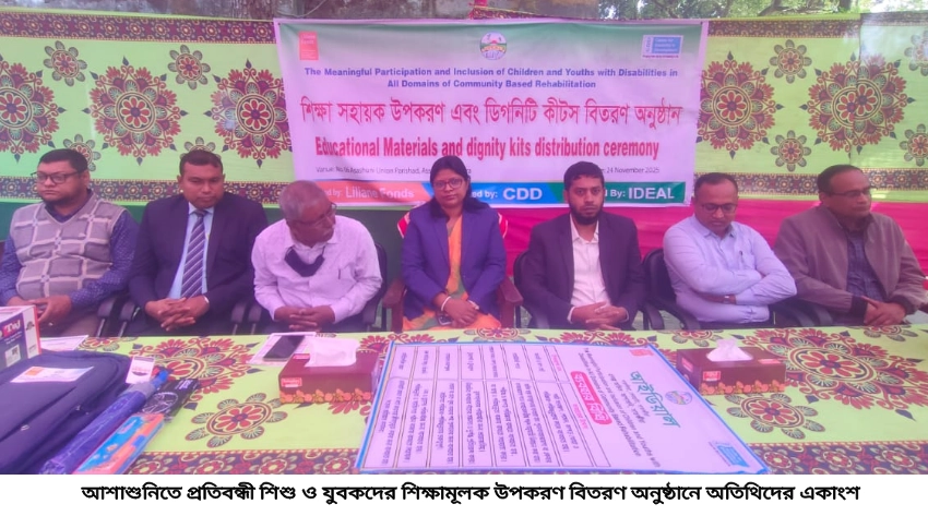 আশাশুনিতে প্রতিবন্ধী শিশু ও যুবকদের শিক্ষামূলক উপকরণ বিতরণ