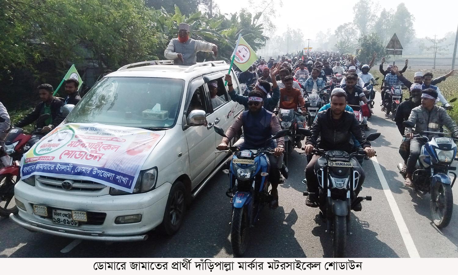 নীলফামারীর ডোমারে বাংলাদেশ জামাতে ইসলামী ডোমার উপজেলা শাখা আয়োজিত দাঁড়িপাল্লা মর্কার এমপি প্রার্থী অধ্যক্ষ মাওঃ আব্দুস সাত্তার এর নির্বাচনী প্রচারনায় অংশ হিসাবে মটরসাইকেল শোডাউন অনুষ্ঠিত হয়েছে।
