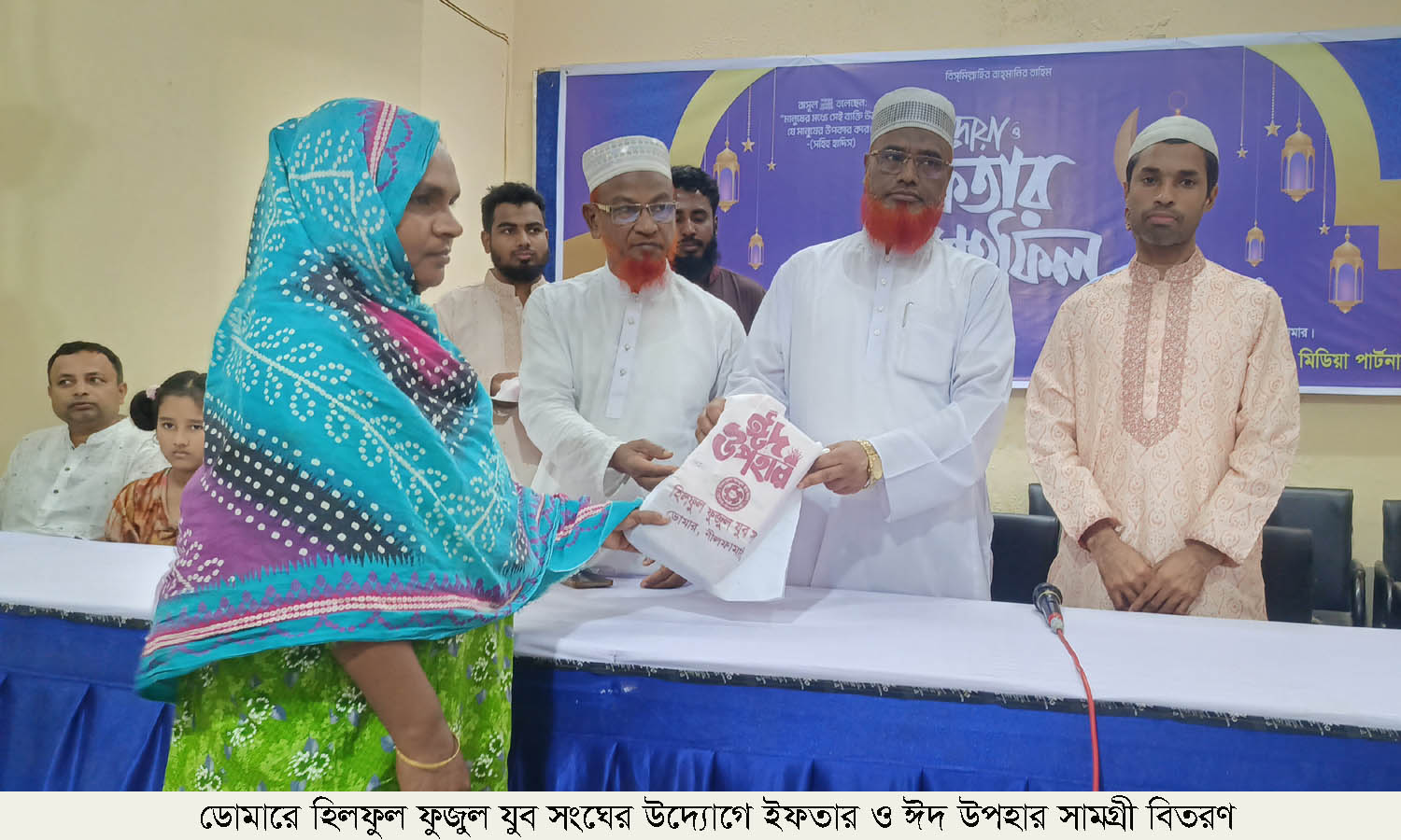ডোমারে হিলফুল ফুজুল যুব সংঘের উদ্যোগে ইফতার ও ঈদ উপহার সামগ্রী বিতরণ