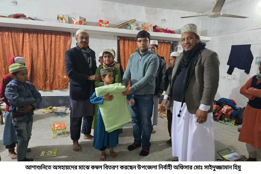 তীব্র শীতে অসহায়দের পাশে প্রশাসন, কম্বল বিতরণ করলেন আশাশুনির ইউএনও