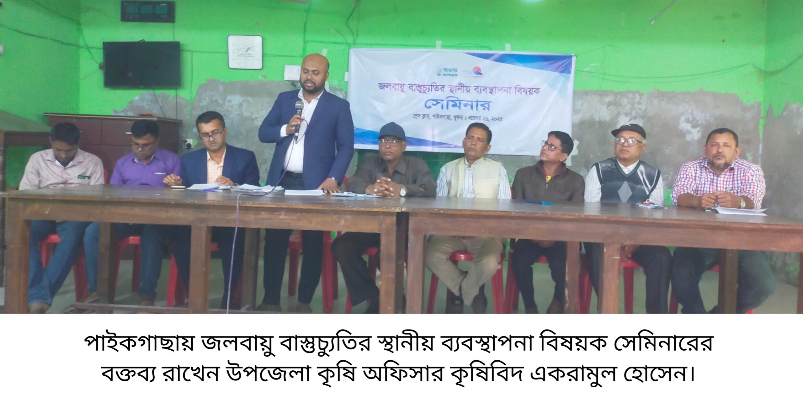 পাইকগাছায় জলবায়ু বাস্তুচ্যুতির স্থানীয় ব্যবস্থাপনা বিষয়ক সেমিনার অনুষ্ঠিত