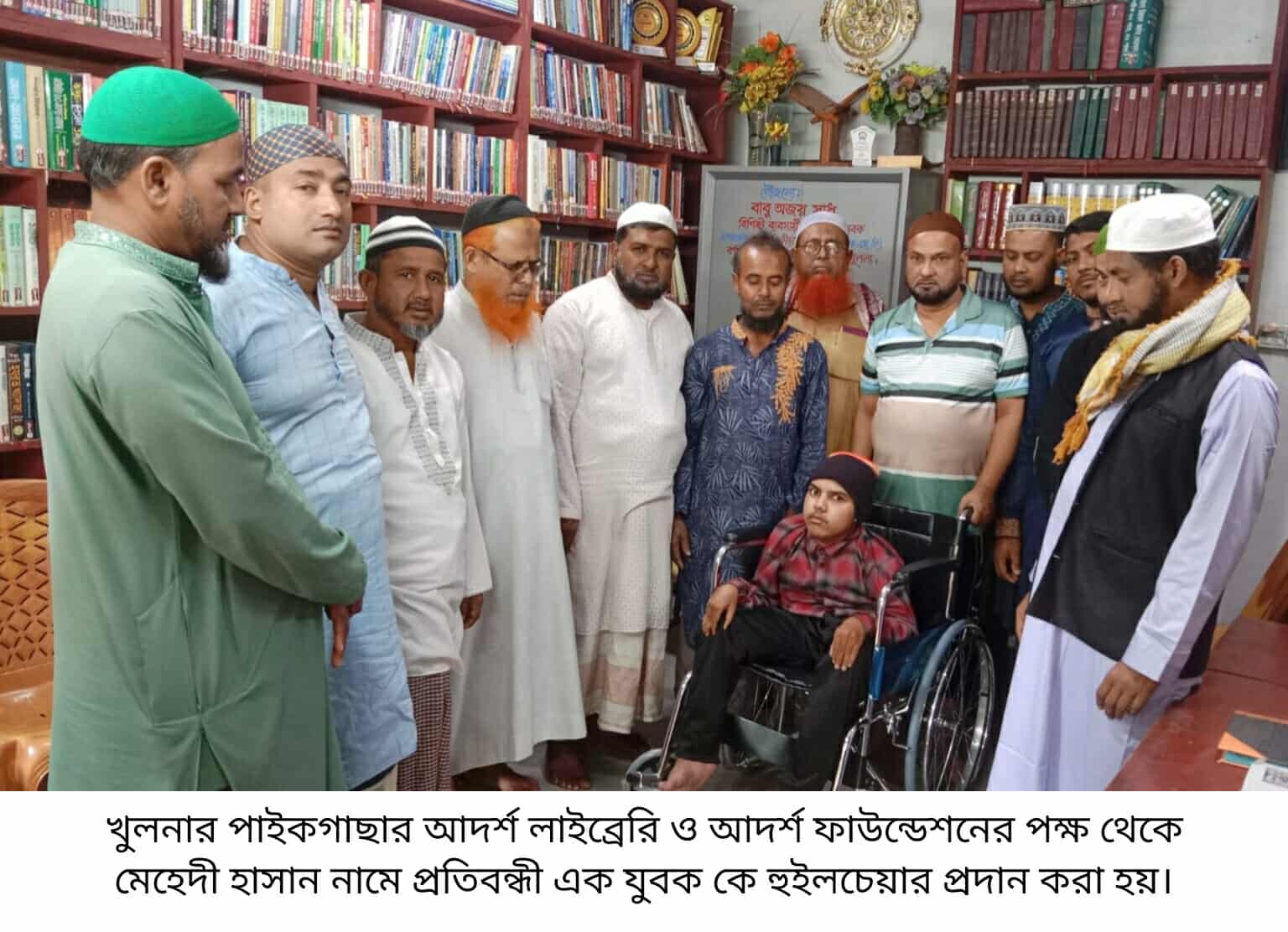 পাইকগাছার আদর্শ লাইব্রেরি থেকে প্রতিবন্ধী যুবক কে হুইলচেয়ার প্রদান