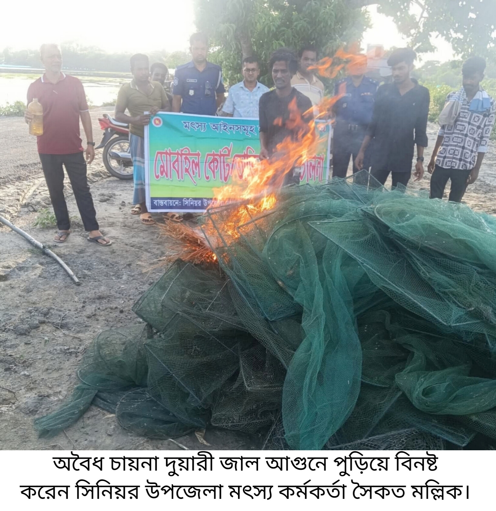 খুলনার পাইকগাছায় উলুবুনিয়া বদ্ধ নদীতে অভিযান চালিয়ে বিপুল পরিমাণ অবৈধ চায়না দুয়ারী জাল জব্দ করা হয়েছে। মৎস্য সম্পদ সুরক্ষা ও সংরক্ষণ আইন বাস্তবায়নের লক্ষ্যে সিনিয়র উপজেলা মৎস্য কর্মকর্তা সৈকত মল্লিক রোববার দুপুরে উপজেলার লতা ইউনিয়নের উলুবুনিয়া বদ্ধ নদীতে অভিযান চালিয়ে বিপুল পরিমাণ অবৈধ চায়না দুয়ারী জাল জব্দ করেন। পরে জব্দকৃত জাল আগুনে পুড়িয়ে বিনষ্ট করা হয়। এ সময় উপস্থিত ছিলেন মেরিন ফিশারিজ কর্মকর্তা তরিকুল ইসলাম ও ক্ষেত্র সহকারী রণধীর সরকার।