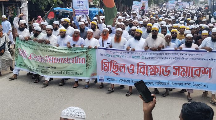 ঠাকুরগাঁওয়ের দিপু রায়, রাণীশংকৈলের উপজেলার হিরা রায় ও মনি রায় কর্তৃক মুসলমান ধর্মাবলম্বীদের প্রিয় নবী হযরত মুহাম্মদ(সা:) ও মা আয়েশা (রা.) এর মর্যাদা ও সম্মানহানির জঘন্যতম কটুক্তি করার প্রতিবাদে বাংলাদেশ