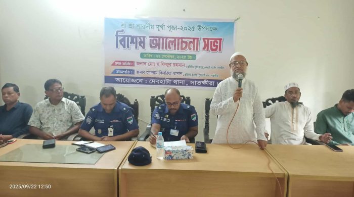 সাতক্ষীরা দেবহাটা থানার আয়োজনে শারদীয় দূর্গাপূজা উপলক্ষে বিশেষ আলোচনা সভা অনুষ্ঠিত হয়েছে। সোমবার ২২ সেপ্টেম্বর সকাল ১১টায় দেবহাটা থানা মিলনায়তনে এ অনুষ্ঠানে সভাপতিত্ব করেন দেবহাটা থানা ভারপ্রাপ্ত কর্মকর্তা গোলাম কিবরিয়া